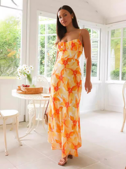 Robe Mi-Longue Fleurie Dos Nu Femme