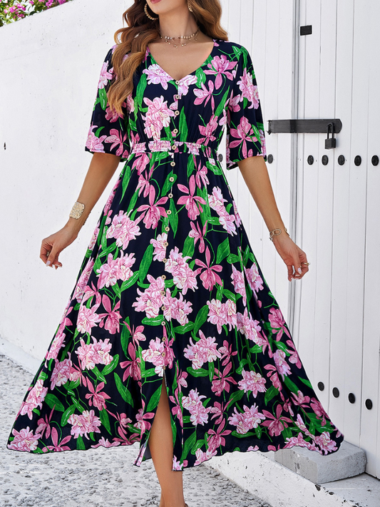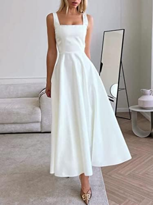 Robe en Coton à Col Rond et Jupe A-Line pour Femme