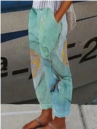 Élise – Pantalon ample en coton et lin avec imprimé discret