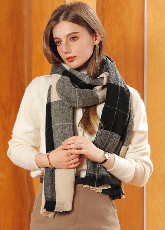 Le tissage raffiné et les motifs à carreaux lumineux apportent une touche sophistiquée à cette pièce. Ses finitions à franges renforcent son charme intemporel et donnent une allure à la fois chic et décontractée.