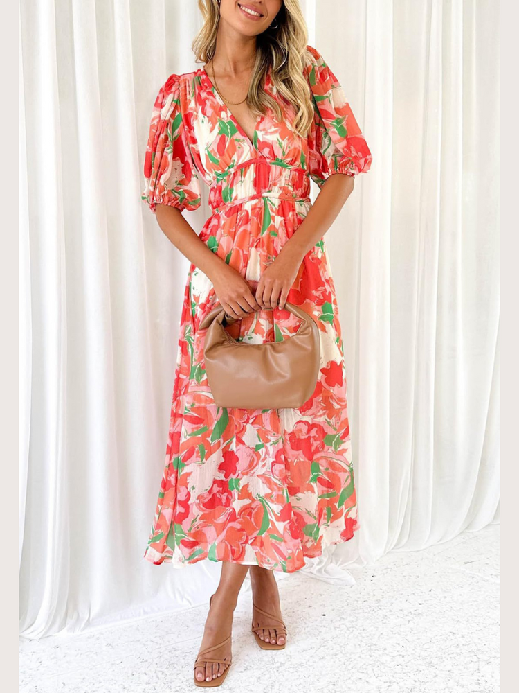 Que ce soit pour flâner en ville, assister à un festival ou partir en escapade estivale, cette robe s’impose comme le choix parfait. Son imprimé floral coloré ajoute une touche romantique et vivante à votre garde-robe, évoquant les champs de fleurs sauvages et les journées sans fin d’été.
