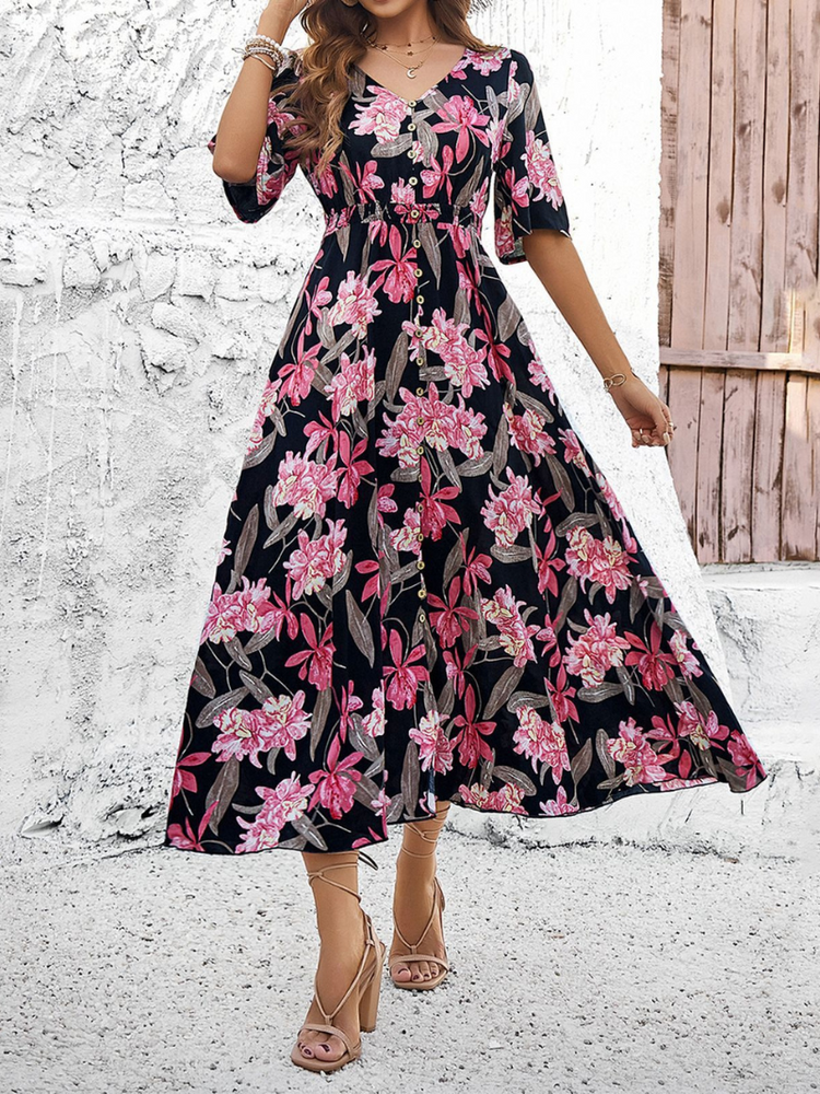 Robe Fleurie Décontractée Fendue Femme