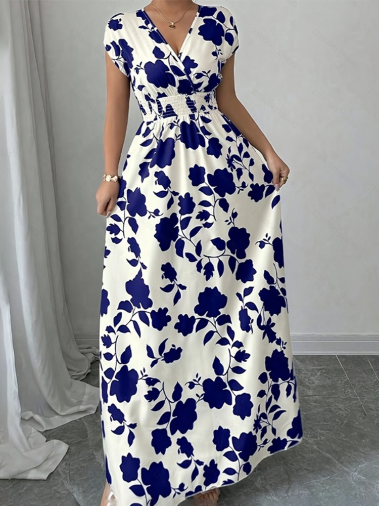 Les manches courtes légères apportent une touche de fraîcheur tout en couvrant délicatement les bras, ce qui la rend idéale pour les journées chaudes comme pour les soirées douces d'été. Grâce à sa taille élastique, la robe épouse parfaitement le corps sans serrer, offrant une grande liberté de mouvement et un ajustement naturel.