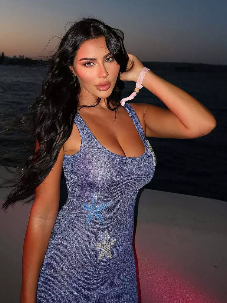 Vous devenez la reine de la nuit, captivant tous les regards dans cette maille scintillante qui épouse parfaitement votre silhouette. Sa couleur profonde évoquant l'océan au crépuscule et ses éclats de lumière sont la promesse de soirées estivales inoubliables, où votre allure est aussi unique que les étoiles.