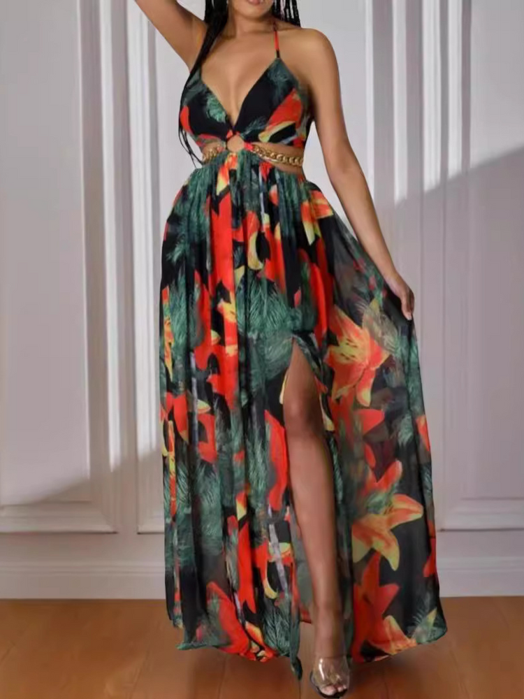 Robe Style Dos Nu Tropicale Fendue